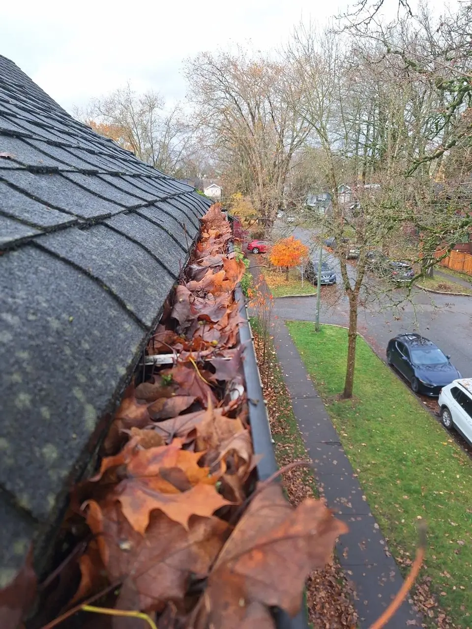 Our prices are tailored to your home’s size, roof type, and gutter debris level. On average, gutter cleaning in Vancouver costs around $300 for a standard single-family home. Larger homes or heavily clogged gutters may cost more.